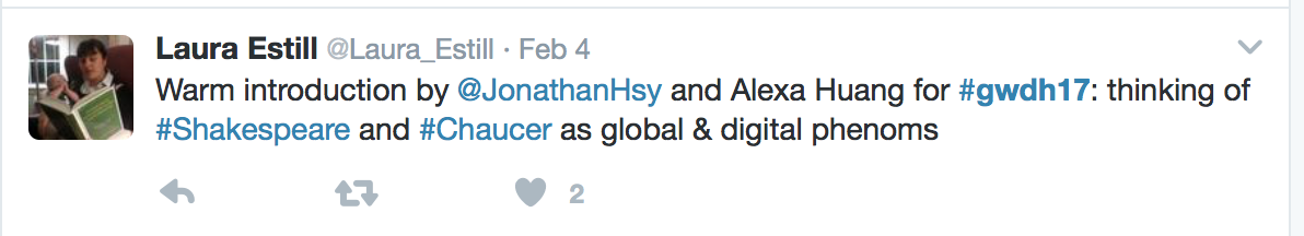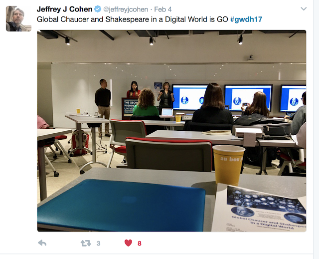 Their introduction covered two main points of interest:” 1.“Digital Hospitality,” outlining basic principles of archive and database creation that has been integral to how Global Chaucers (an international collective of scholars, translators, and enthusiasts) has developed and the shape it has taken. 2. “Linguistic and Cultural Hospitality,” a process of learning by engaging comparative translations as well as modern-day adaptations and performances of a dominant culture’s canonical text (i.e.,The Canterbury Tales). We use these key terms to explore both a theory and practice of digital curation: a form of knowledge building that is simultaneously an act of artistic creation.”