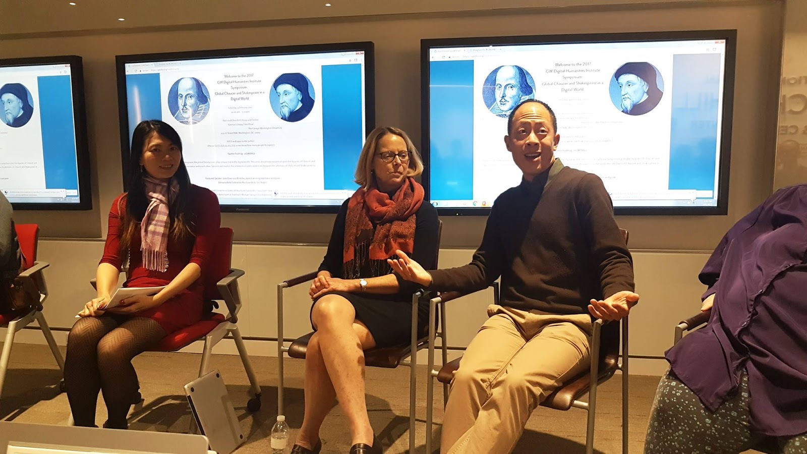 After a final break for coffee and refreshments, symposium presenters including Jill Bradbury, Candace Barrington and Jonathan Hsy (Co-Directors of Global Chaucers), Carol Robinson, and José Francisco Botelho assembled at the front of the room for the final session of the day: