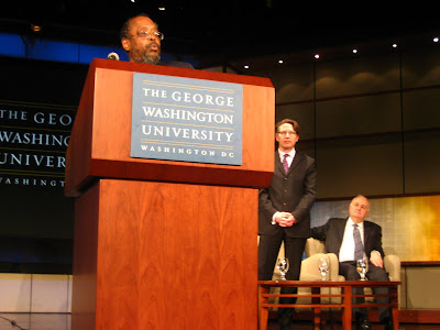 After Chair of the English Department Jeffrey J. Cohen introduced GWU President Steven Knapp who introduced author Edward P. Jones, Jones read two selections from his Pulitzer Prize winning novel The Known World: