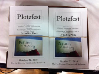 Yesterday’s Plotzfest was a huge success. More than 100 people came out to hear our six wonderful speakers–Carolyn Betensky, Richard Flynn, Margaret Higgonet, Uli Knoepflmacher, John Plotz, and Rajeswari Sunder Rajan–and celebrate Prof. Judith Plotz’s long and productive career.